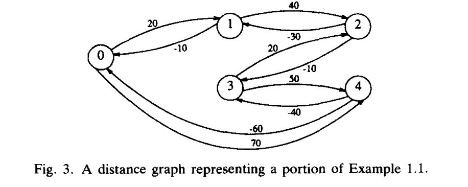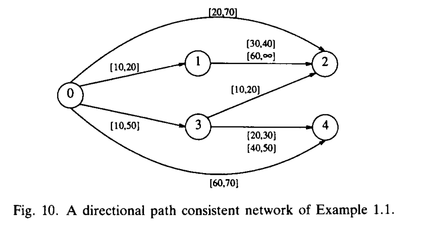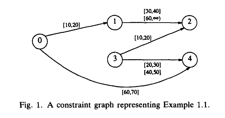 当 TCSP 中所有约束指定一个间隔时,这是一个简单时间问题(STP)。该研究将 STP 和有向边缘权重图(directed edge-weighted graph)联系起来,这类图叫做距离图(distance graph)。