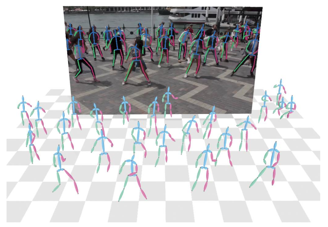 反投影得到人体关键点绝对三维坐标。其中 K 是相机内参矩阵,在绝大部分应用中都是已知的,如果未知,可以使用估计值。