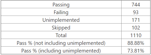 在创作者更新中,WSL记录了Linux内核版本是4.4。我们已经将LTP版本与20160510相匹配。 在下表中,你会发现周年更新的LTP结果中不存在一行。未实现的指定意味着测试失败,但系统调用未在WSL中实现。这个区别很重要,因为我们根据用户输入和遥测实现了所需的系统调用。我们尚未实现的许多系统调用未被使用或被很少的应用程序所使用。未实现的集合中还包含33个我们还没有支持的/ dev / loop设备的测试。