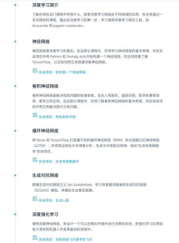 Udacity “深度学习”基石纳米学位项目分为"第一学期”和“第二学期”两个学期的内容,你可以根据自己的能力进行选择。