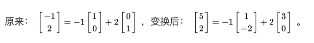 这其中的区别就是基向量不一样了,而线性组合的系数 -1 与 2 保持固定不变。