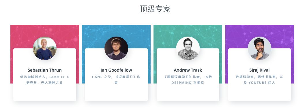 硅谷前沿科技教育平台 Udacity 联手无人车之父 Sebastian Thrun、GANs 之父 Ian Goodfellow 和谷歌 Deepmind 科学家 Andrew Trask 等顶级专家,推出「深度学习基石纳米学位项目」!这门课将用充满活力的硅谷方式,通过充满互动的视频、独家实战项目和个性化学习辅导,带你由浅入深地探索这个领域。