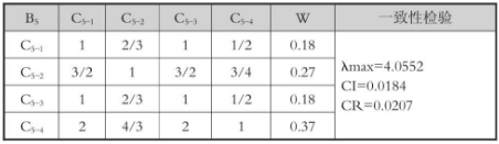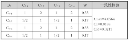 在得到C.I与R.I的数值后,便可进行特征数据的一致性检验运算,公式如下: