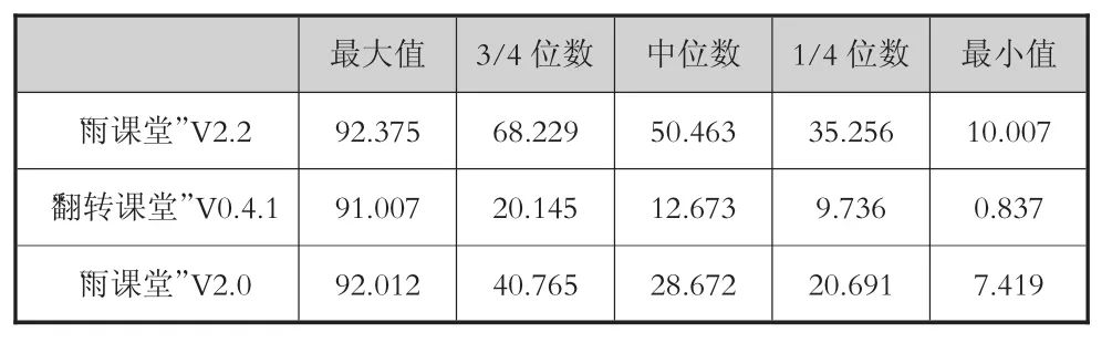 在对国家级权威数据库NIER.Database(国家创新教育研究)的数据采集中,本研究随机选取了江苏省高校实际教学的真实数据(“翻转课堂”V0.4.1、“雨课堂”V2.0和“雨课堂”V2.2等三类数据,下同)为研究样本。