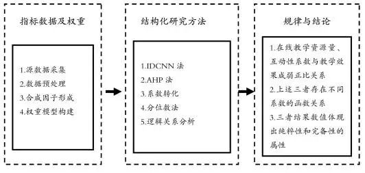 具体地:(1)每种智慧课堂的教学效果,均使用模糊综合的方法实现了量化;且其每个核心要素一级、二级指标的作用大小,也都运用多极化矩阵的方法,并使用权重的指标实现了数值化。这有利于针对性地优化智慧课堂结构设计,从而为提升智慧课堂的教学效果精准发力。(2)结构化方法证实了在线教学资源、互动性行为及教学效果三者,两两之间,存在弱正比例线性逻辑关系。(3)并非所有在线资源都会正向影响师生间的互动性行为(系数);也并非所有的互动性行为均正向决定智慧课堂的教学效果。而且它们的贡献程度也是大相径庭,分别对应着不同系数的函数关系。(4)实证结果通常符合纯粹性属性,即三者之间反映出较为明显的一致性和相承性,并体现了比较严格的弱正比例逻辑关系;从完备性属性来看,研究结果也满足大数定理规律。