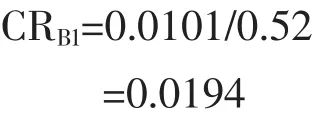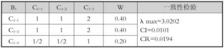 那么,依据上述 B1的相关计算结果:λB1max=3.0202;可得出: