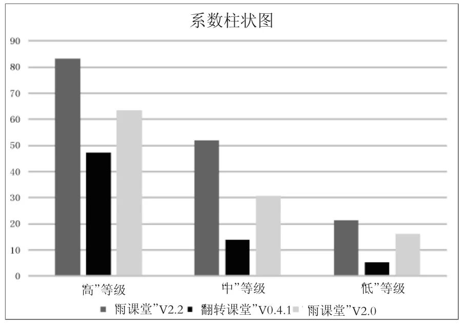 从图3的形状可以直观看出:师生间互动性行为的互动性系数值,整体呈现“斜坡式”分布。“雨课堂”V2.2的坡度基本均匀,“翻转课堂”V0.4.1的坡度先大后小,而“雨课堂”V2.0则大致处于两者之间。