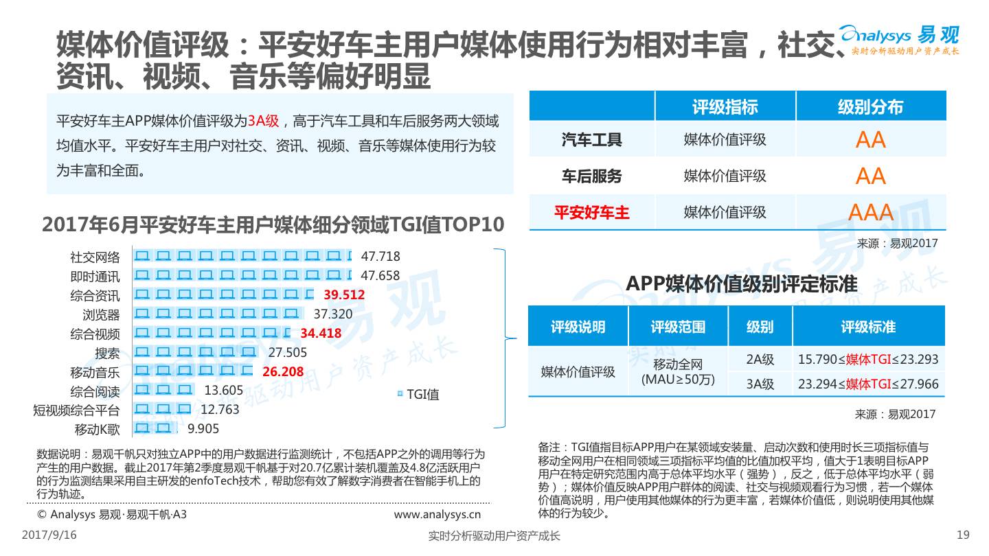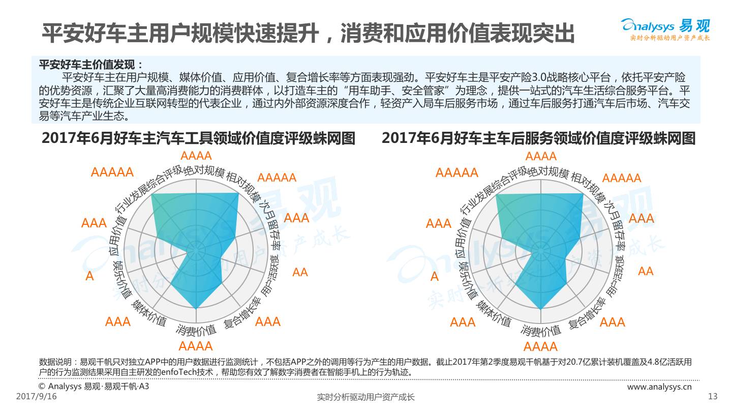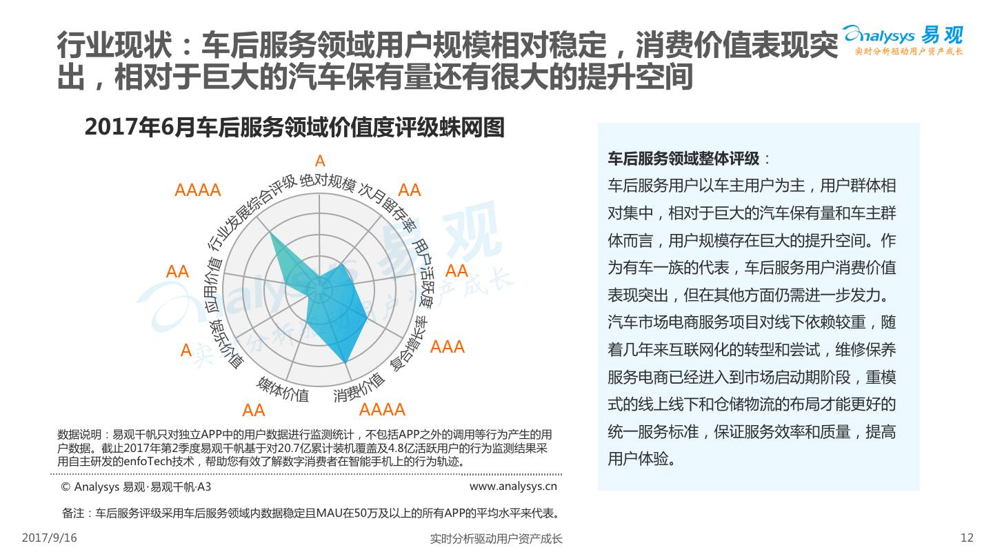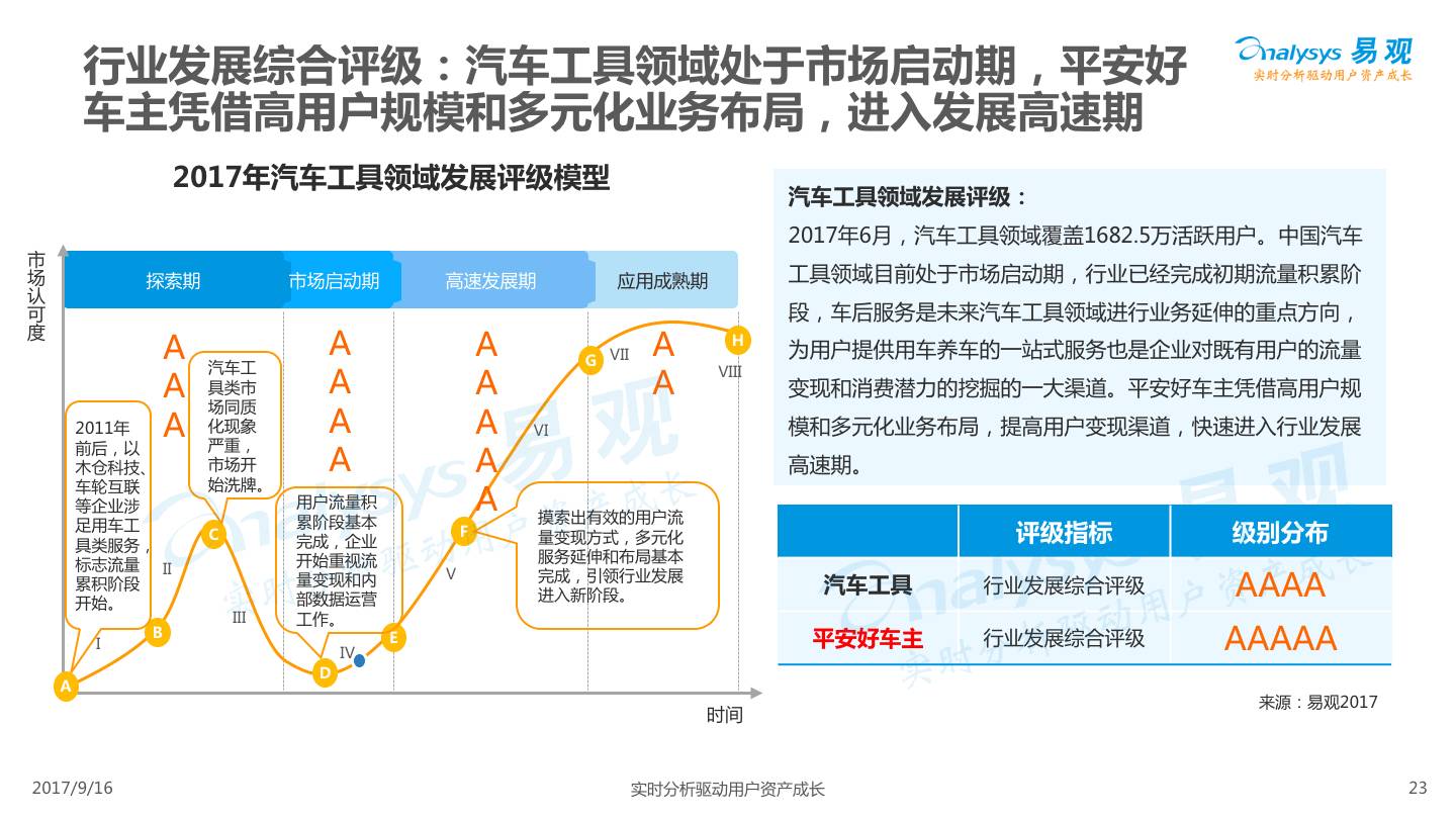 易观发布《平安好车主APP价值评级分析》,平安好车主从车险服务出发,轻量化布局汽车后市场,整合多项企业内外部资源,完善服务项目,提高用户体验,形成综合性汽车生活服务平台。
