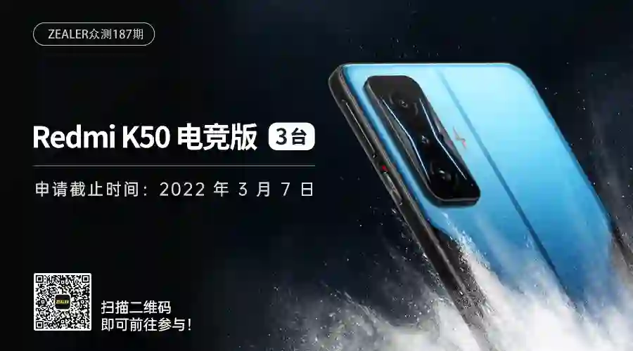 这才是真旗舰?Redmi K50 电竞版同步上线 ZEALER 众测!安卓阵营最强 X 轴马达、4860mm² 双 VC 散热、120W 神仙秒充、DisplayMate A+ 电竞直屏...大家觉得这款号称“全线拉满”的冷血旗舰能否续写 K40 神话?戳下方评论区链接参与试用,一探究竟!扫上方二维码或戳左下角「阅读原文」即可前往参与。