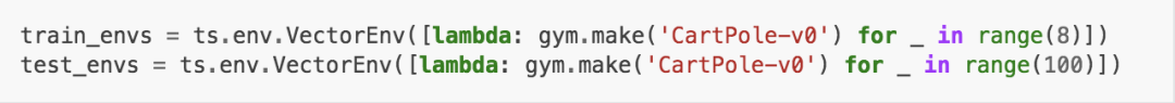 习惯上使用OpenAI Gym,如果使用Python代码,只需要简单的调用Tianshou即可。