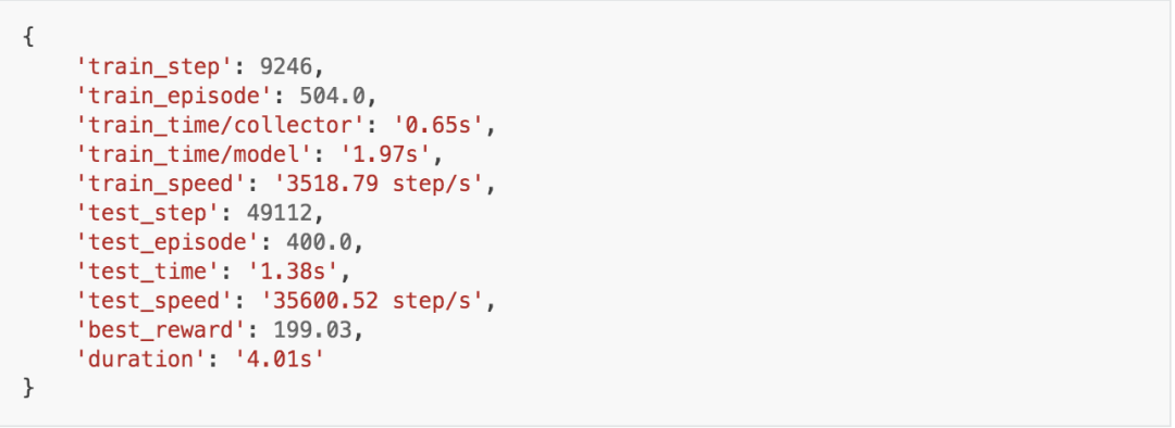记录显示,我们在几乎4秒的时间内完成了对DQN的训练。