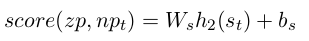 然后我们将最后隐层的输出当做输入到一个维数为2的得分层: