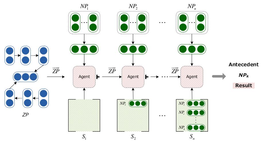图2 基于强化学习的中文零指代消解方法流程图
