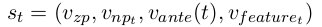 我们的状态向量定义为零代词,候选先行语和先行语信息的组合。对于时间 t, 状态向量st定义为:
