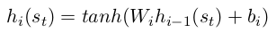 我们的智能体是由一个前馈神经网络构成,其包括了两个隐层,每个隐层的激活函数都是tanh。对于每一层,我们得到其输出: