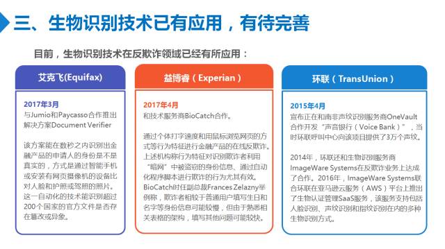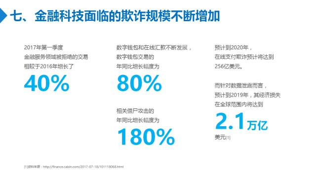 报告还作出了对金融反欺诈技术发展趋势的展望:人工智能、云计算、生物识别和区块链等技术将被越来越多地探索。