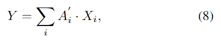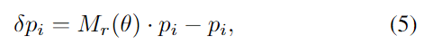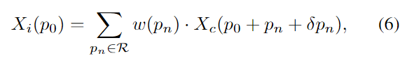 其中Mr(θ)是公式(1)中定义的旋转矩阵。对于输出特征图Xi中的每个位置p0,有: