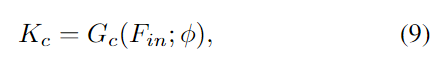 其中G代表动态滤波器生成器,φ是Gc的参数集,Kc是学习的 example-wise的卷积核权重。然后,通过卷积运算获得特征优化。