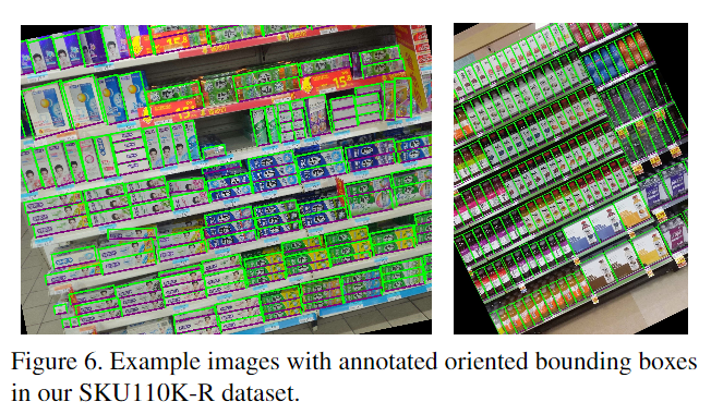 (3)重新标记数据集并得到SKU110KR,该数据集包含定向bounding box的准确标注,以促进对定向和密集物体的检测。