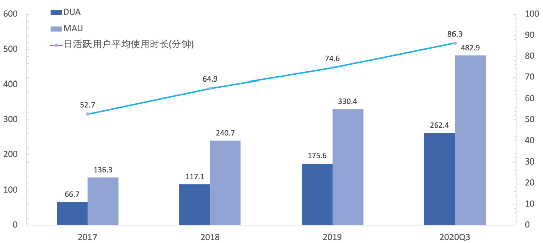 图8:快手DAU、MAU和用户使用时间稳步增长
