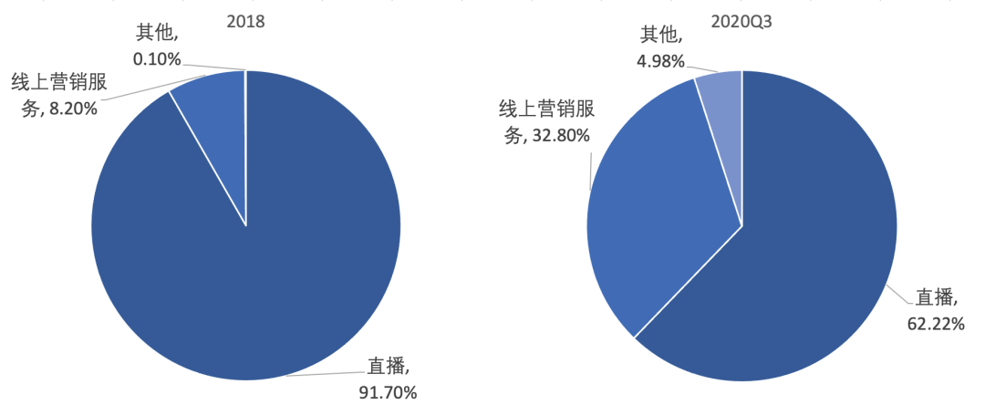 图6:快手收入结构的变迁,2018与2020Q3