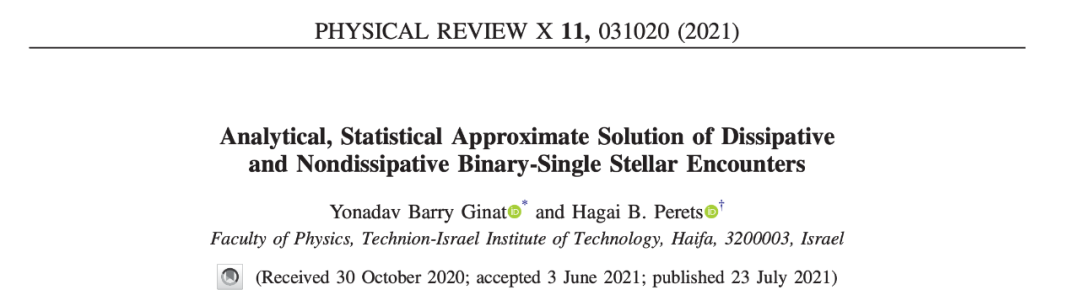 最近发表在《Physical Review X》杂志的一项研究中,来自以色列理工学院的 Yonadav Barry Ginat 及其导师 Hagai Perets 利用这种不可预测性为该过程的两个阶段提出了一个统计解决方案。他们计算了每个第一阶段接触中任何潜在结果的可能性,而不是预测实际事件。尽管该问题尚未有一个全面的解决方案,但混沌的随机特性允许人们计算三重交互以两种方式之一结束的可能性。