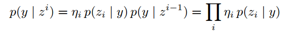记i帧中像素的标签为y并且它的观测是zi, 根据贝叶斯法则有: