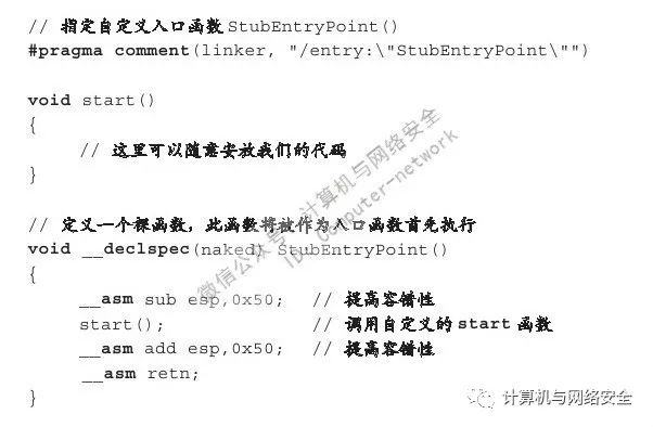 如果要想将一个程序寄生在其他程序中,并能同时兼容EXE与DLL两种格式的文件,那么首先要针对这两种不同的情况分别准备一小段非常简单的引导代码,这段代码可能只有5行左右,它唯一的任务就是引导寄生在宿主程序中的Stub代码(程序)正确执行。