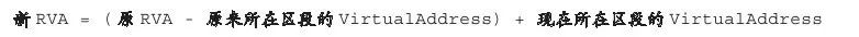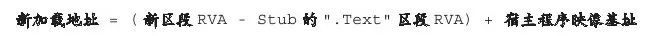 我们都知道,系统的重定位操作修复的只是基址部分,但是在我们将Stub移动到新的区段中后,其代码与数据所在的文件偏移与虚拟偏移全部都会发生巨大的变化,因此可以按照以下公式来计算新的加载地址,从而修复这个问题。