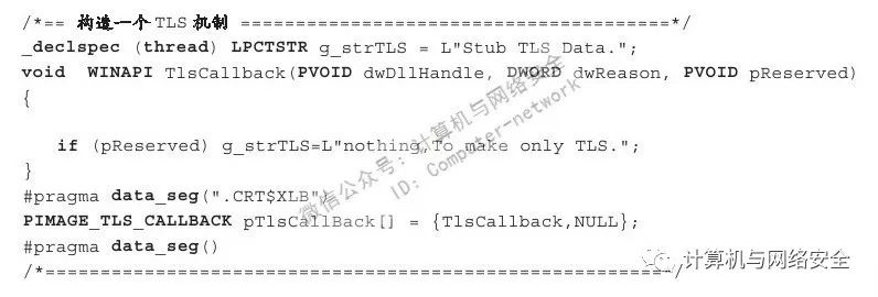 以上代码从逻辑上讲毫无意义,它的唯一作用就是使Stub部分具有TLS特性。