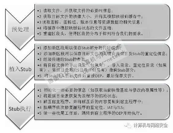我们以图8的流程为例,先讲讲预处理部分的第2步。有些人可能有疑问,为什么要在压缩前先将宿主程序按照区段信息映射到一个缓存中呢?难道就不能在Stub中做这件事吗?