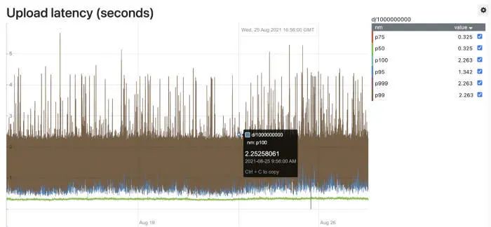 MemQ 支持基于大小和时间的刷新到存储层,除了一些优化来抑制抖动外,还能对最大的尾部延迟进行了硬限制。到目前为止,我们能够通过亚马逊云科技 S3 存储实现 30 秒钟的 p99 E2E 延迟,而且我们还在积极地改进 MemQ 的延迟,从而提高了从 Kafka 向 MemQ 迁移的用例数量。