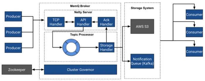 MemQ 生产者负责向代理发送数据。它使用异步调度模型,允许非阻塞的发送,而不需要等待确认。