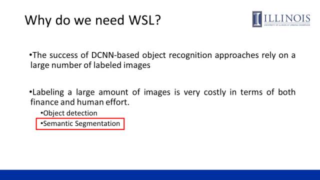 这次报告的主题是“弱监督学习在语义分割方面的应用”。