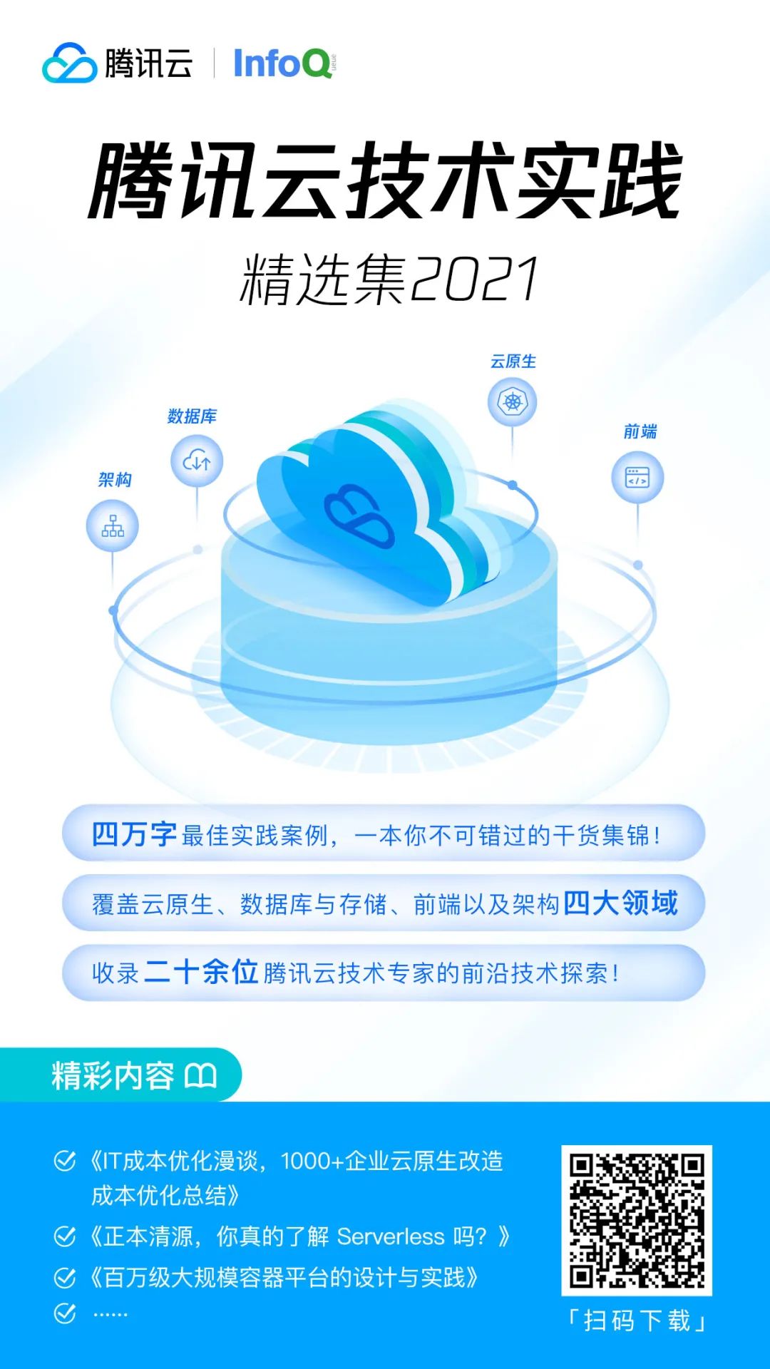 《腾讯云技术实践精选集 2021》,将二十余位腾讯云讲师在 QCon 全球软件开发大会、ArchSummit 全球架构师峰会、GMTC 全球大前端技术大会中的演讲内容进行了收录,以期帮助更多中国互联网行业的同仁们学习腾讯云在技术演进、能力落地以及行业探索等方面的经验。