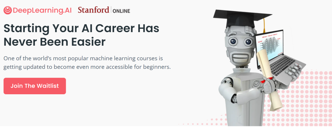 本课程将被一门新的、扩展更深的《Machine Learning Specialization》所取代。新课程依然由 Stanford Online 和 DeepLearning.AI 联合推出,并将于 6 月上线。
