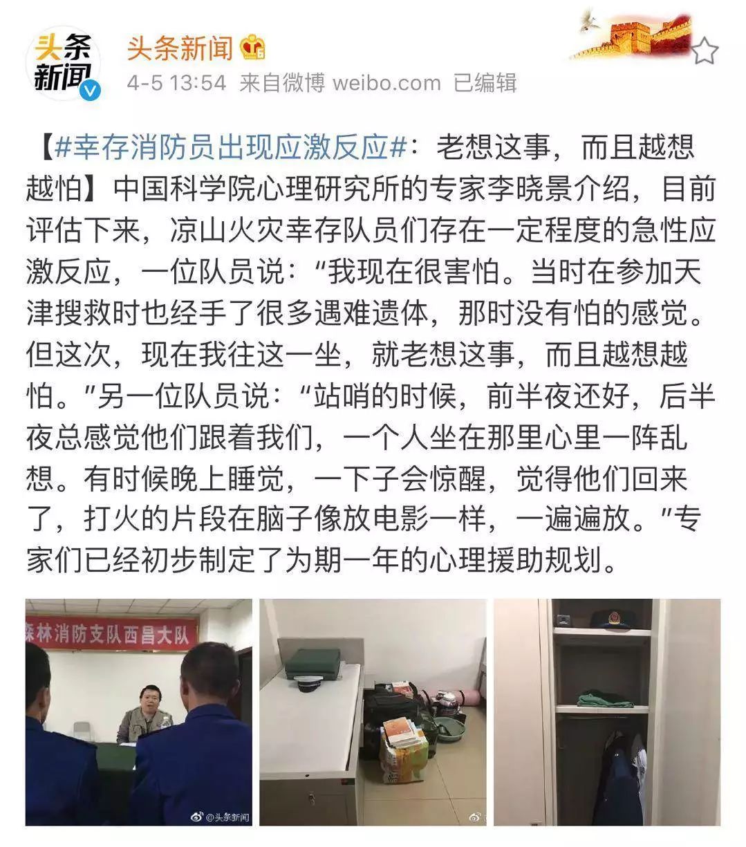 那些幸存的消防员有的人不说话,有的人害怕,手抖,睡不着觉。