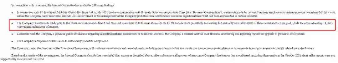 经过几个月的调查,该独立特别调查委员会有了答案。今年2月,该团队发布了一份报告,该报告称通过调查发现,FF投资者发布的声明中存在某些与事实不一致的地方,以及公司治理和合规性方面存在某些问题。