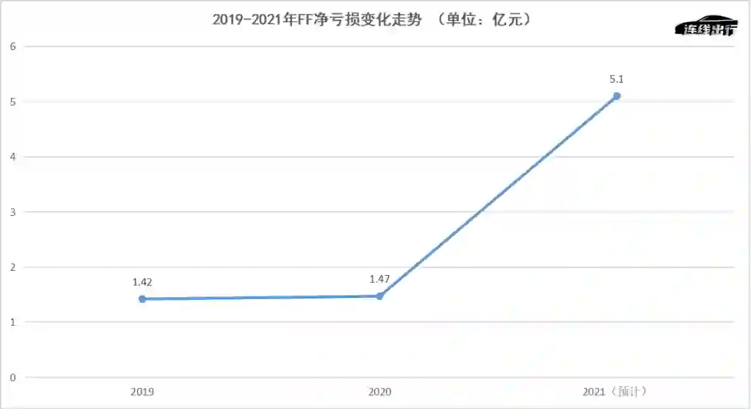 据FF最新公告披露的数据显示,净亏损方面,其预计去年全年亏损会达到5.1亿美元-5.5亿美元,反观2020年同期的净亏损为1.47亿美元,这就意味着FF去年的净亏损同比扩大了247%。