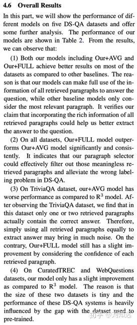 例如,论文 [2] 的辅助实验包括 4.7 Paragraph Selector Performance Analysis、4.8 Performance with different numbers of paragraphs、4.9 Potential improvement、4.10 Case study 等,从各方面呈现本文提出方法的特点。