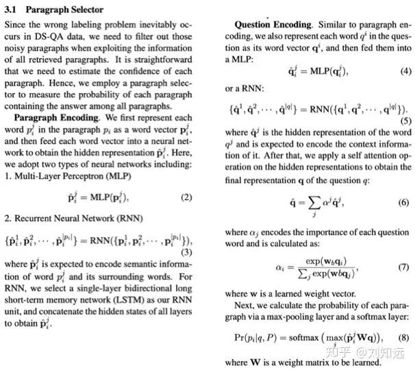 然后进入” 分 “的部分,则需对应” 总 “中的框架,分别介绍各关键模块 / 步骤。例如,论文 [2] 的 Methodology” 分 “的部分,就包括 3.1 Paragraph Selector、3.2 Paragraph Reader、3.3 Learning and Prediction。读者在” 总 “的部分已经对方法有全景式的了解,有的放矢,就比较容易理解每个模块的具体细节。而每个” 分 “的部分中,又可以进一步采用” 总 - 分 “结构进行介绍,例如 3.1 小节做完总体介绍后,又会按照 Paragraph Encoding 和 Question Encoding 分别介绍。为了更清晰地体现” 总 - 分 “结构,可以将各 “分” 的部分命名并加粗。