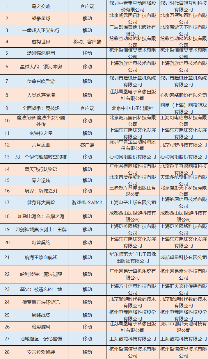36氪获悉,根据国家新闻出版广电总局官网消息,昨日,2020年新一批进口网络游戏版号已下发,审批时间为8月6日。本次新过审28款游戏,其中包括1款Switch游戏《健身环大冒险》,4款客户端游戏《全面战争:竞技场》等,以及腾讯的《使命召唤手游》。
