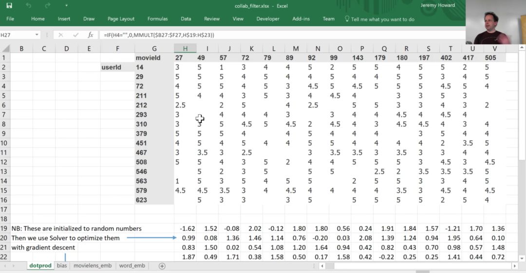 你将通过做出电影推荐系统的示例了解协同过滤。我们还将深入挖掘深度学习的一些较低层次的细节,比如Momentum 和 Adam 优化器是如何运作的,以及使用权重衰减的正则化技术。你将学习如何去思考 chain rule, jacobian 和 hessian 矩阵等数学概念。
