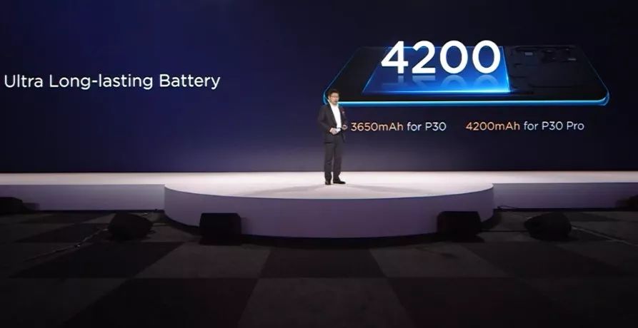 其中华为P30电池容量为3650mAh,华为P30 Pro电池容量为4200mAh,在同尺寸机型中续航强劲,重度使用可长达11.6小时。
