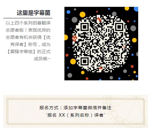 字幕语言:英字(译者招募中,详见下文)