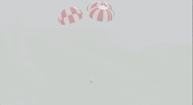 4分45秒后,两个降落伞展开: