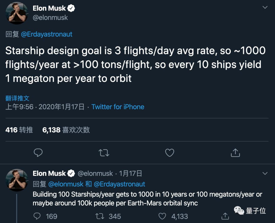 而Starship就是为这个目标设计的,平均每天3次航班,每年1000次航班,每次航班载荷超过100吨,10艘飞船每年就能将百万吨载荷送上轨道。