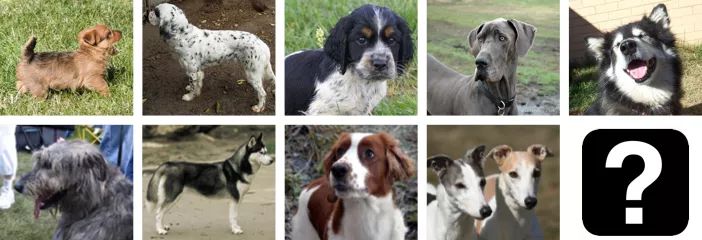 在这篇文章里,我们将图像样本分类问题看做“狗狗种类的区分”问题(总共有9种狗狗):