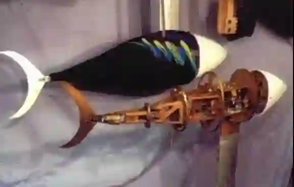 很多特点鲜明的鱼或者咱们能想到的鱼,基本都被作为仿造对象。世界上第一条仿生机器鱼,它1994年诞生在美国麻省理工学院。这个鱼大概有一米二长,游速最快可以达到每秒两米。