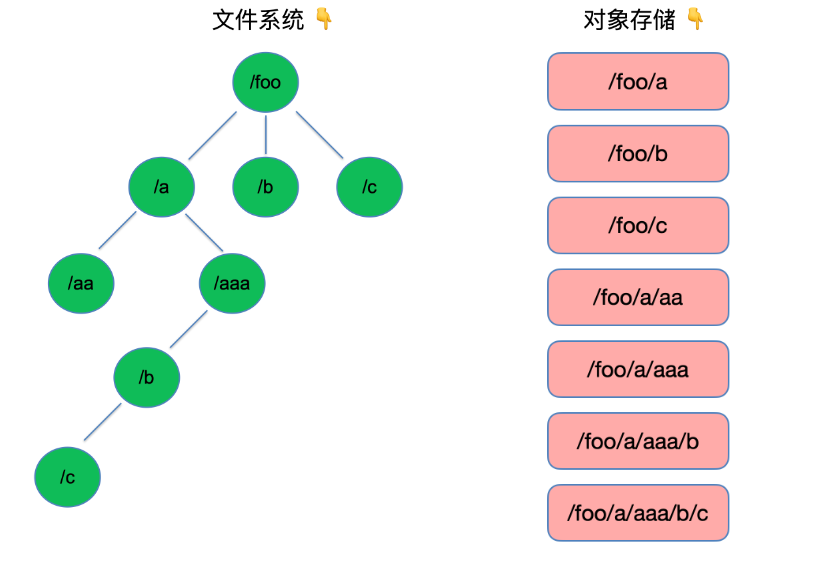 对象存储没有树形结构的,它的整个存储结构是扁平的。当用户需要存储成千上万,甚至数亿个对象,对象存储需要做的是用 Key 去建立一份索引,Key 可以理解为文件名是该对象唯一标识符。如果用户要执行 Listing,只能在这个索引里面去搜索,搜索的性能相比树形结构的查找弱很多。